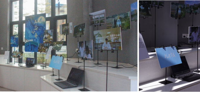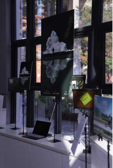 除此之外,展区内也有一部分作品来自员工优秀的毕设作品和课程优秀成果。如:聚焦村医的纪录片《医靠》;记录脑瘫儿童的纪录片《牵着蜗牛去散步》;用创意剪辑手法展示“双减”政策实施前后员工的心态变化的作品《--=+》等,均传达出华厦人文学子对当下社会议题的关注与思考。
