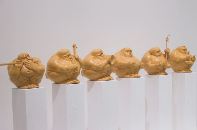 雕塑区是由数字媒体艺术雕塑工作坊师生共同创作的,所用的工艺有传统的石膏工艺、现代的3D打印技术等,采用抽象化、夸张化的风格,创作出包括《大思想家》《南音》《乐系列之——吹拉弹唱》等作品,利用趣味性十足的雕塑作品传承和弘扬中国优秀传统文化。