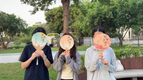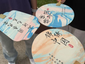 活动当日,钟楼前的创意小天地里,参与者们带着对中秋的憧憬围坐一堂。无需专业绘画基础,素白扇面就是最好的画布:有人凝神勾勒一轮圆月,让清辉洒满扇面;有人轻描几枝桂影,让暗香浮动其间;还有人将家人团聚的温馨场景融入笔墨,每一笔蘸取的不仅是颜料,更是对团圆的珍视。