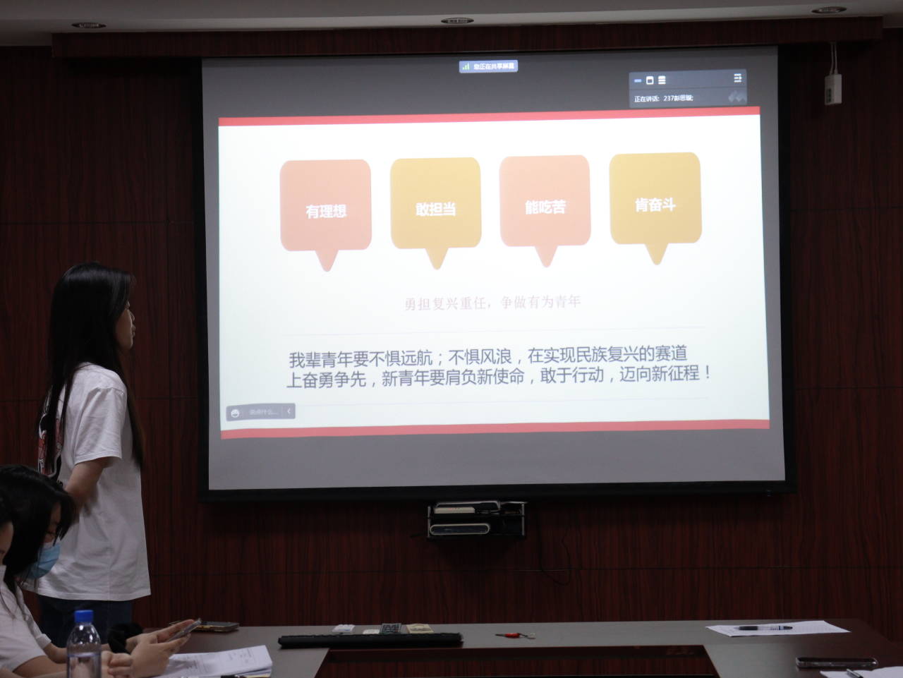 会议最后,彭思璇同志认为提高行动力要从制定一个小目标、分解目标、进入心流状态、制定奖励四个部分依次进行。我辈青年要做到有理想、敢担当、能吃苦、肯奋斗,要不惧远航,不惧风浪,在实现民族复兴的赛道上奋勇争先,新青年要肩负新使命,敢于行动,迈向新征程!